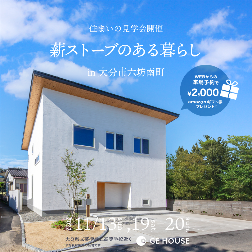 GE HOUSEでは11月13日(日)、19日(土)、20日(日)大分市六坊南町にて、見学会を行います。