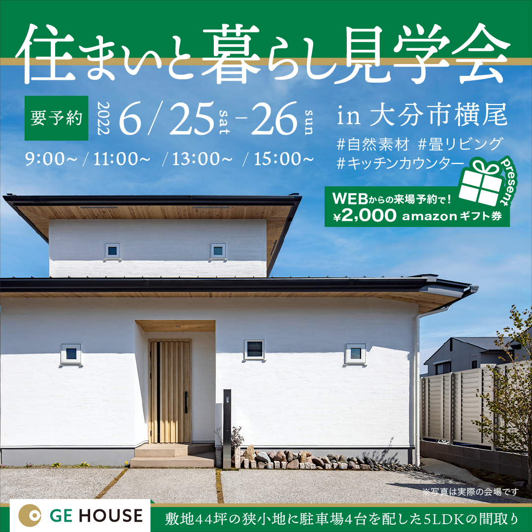 GE HOUSEでは6/25(土)、26(日)、大分市横尾にて、見学会を行います。