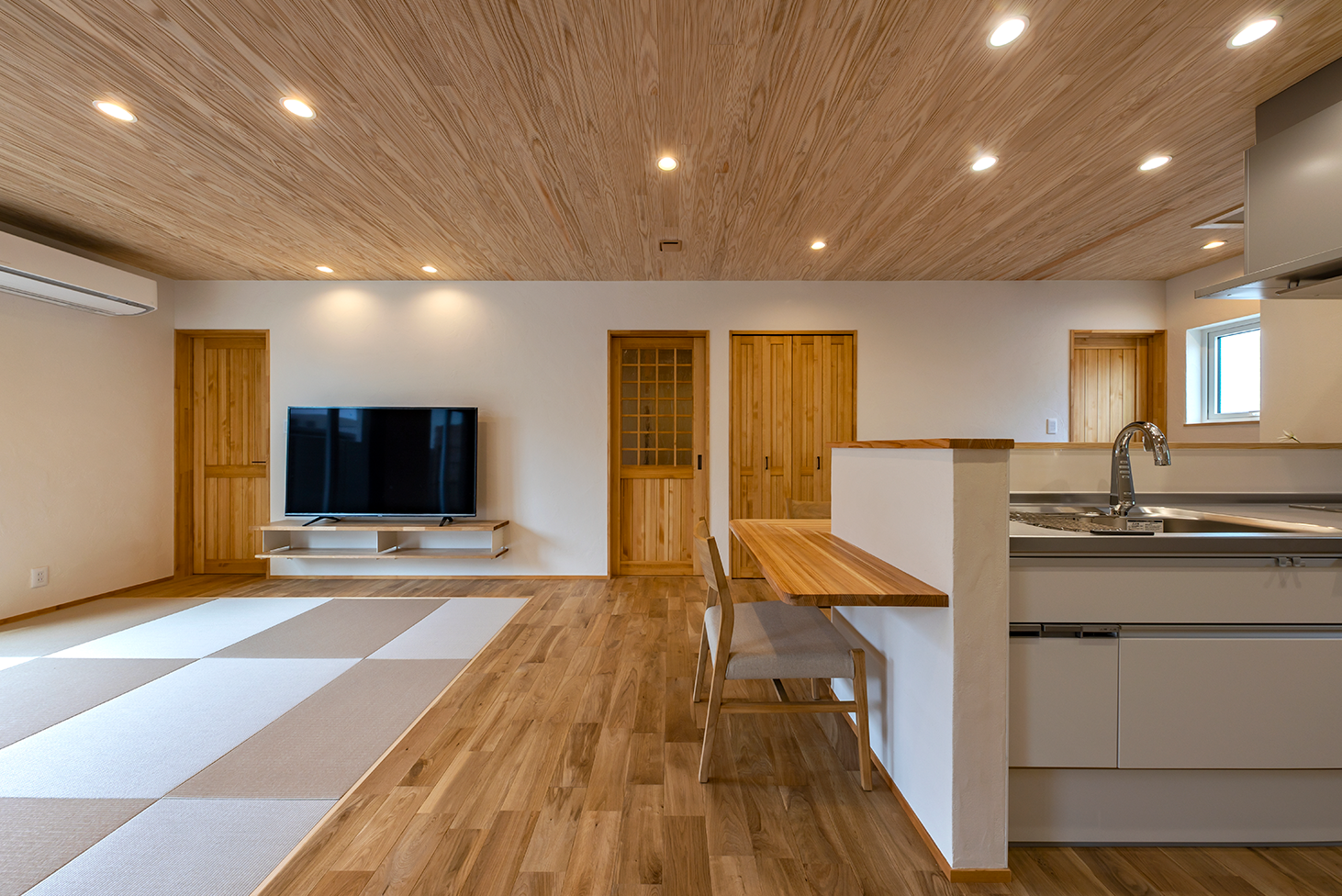 心地よいイグサ織りの畳スペースも設け、家族のお気に入りのリビングとなりました。