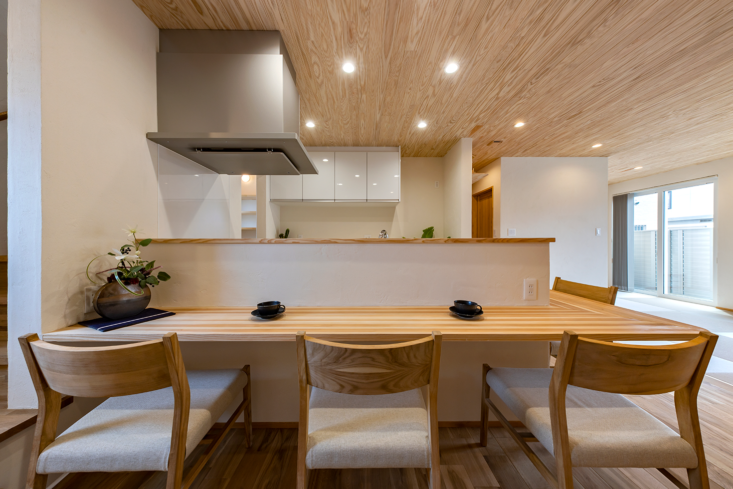 ストレートに走る杉の美しい木目も印象的。
