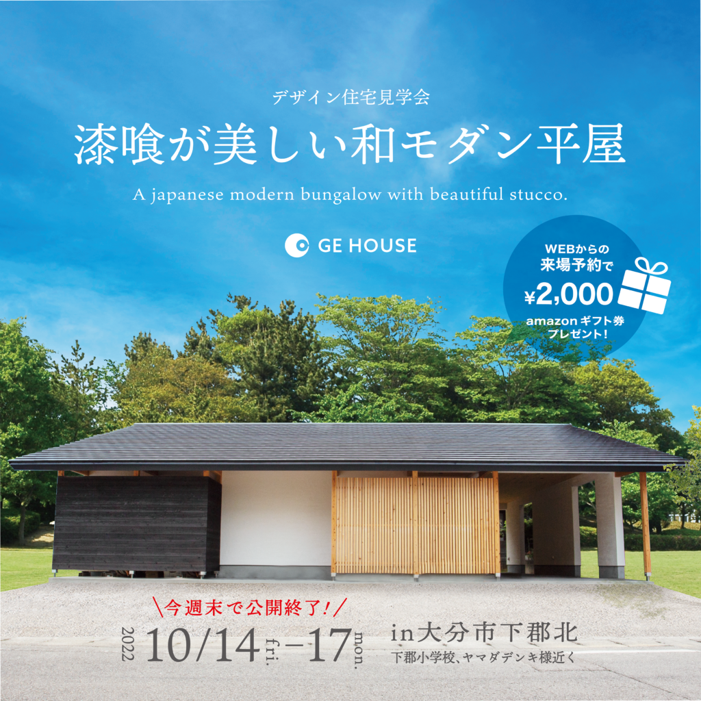 GE HOUSEでは大分市下郡北にて和モダンの平屋の完成お披露目会を開催することとなりました。